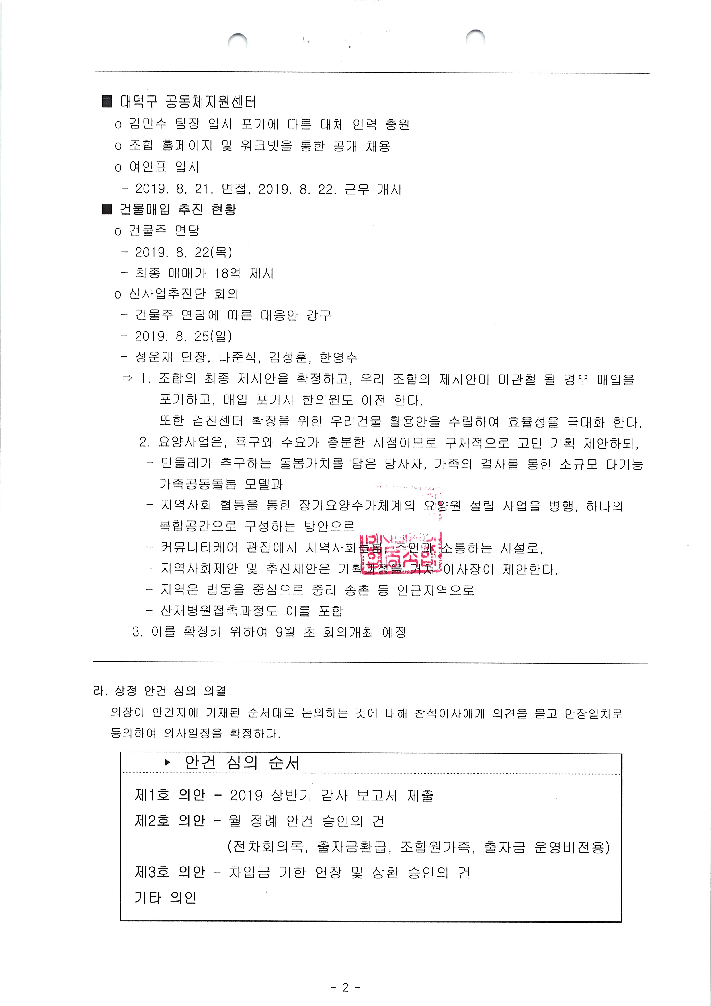 [2019-08] 정기이사회 결과보고 상세내용