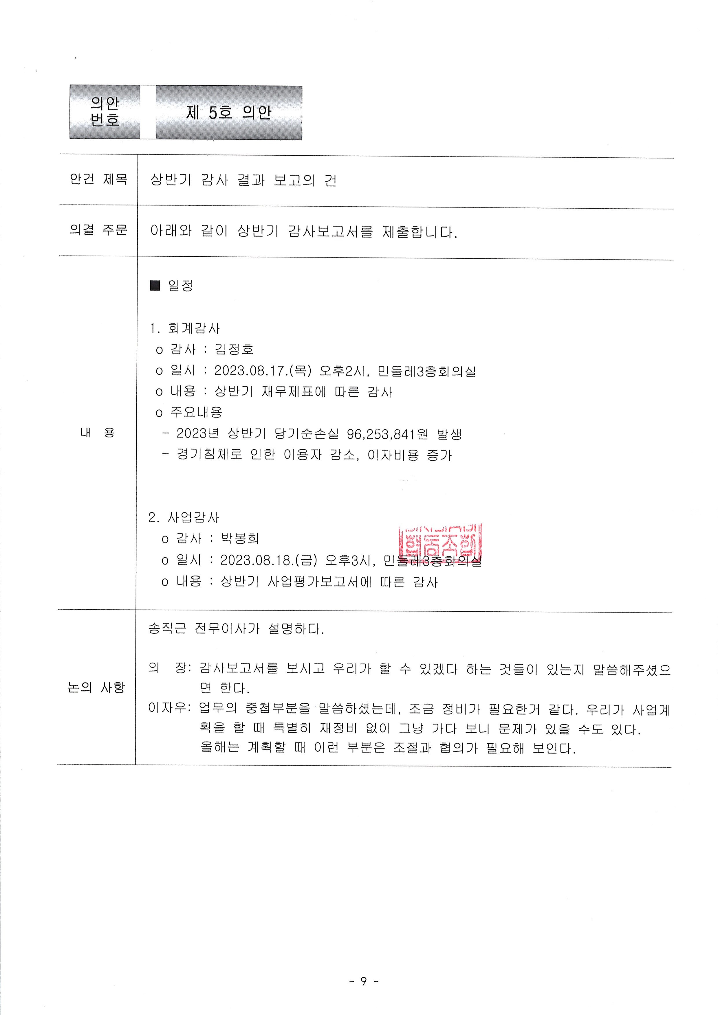 [2023-08] 정기이사회 결과보고 상세내용