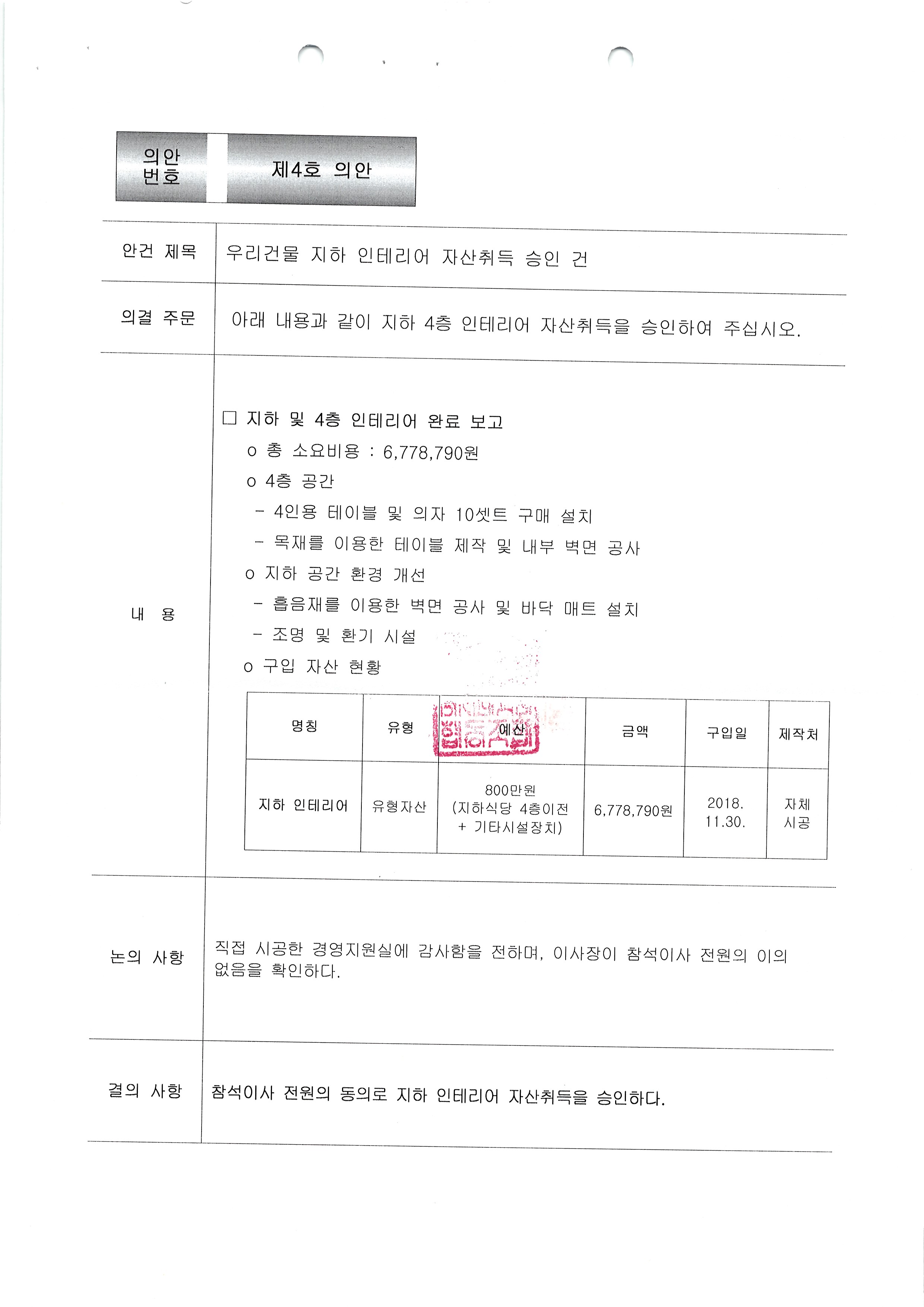 [2018-11] 임시이사회 결과보고