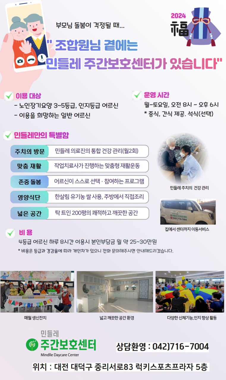 "조합원님 곁에는 민들레주간보호센터가 있습니다"