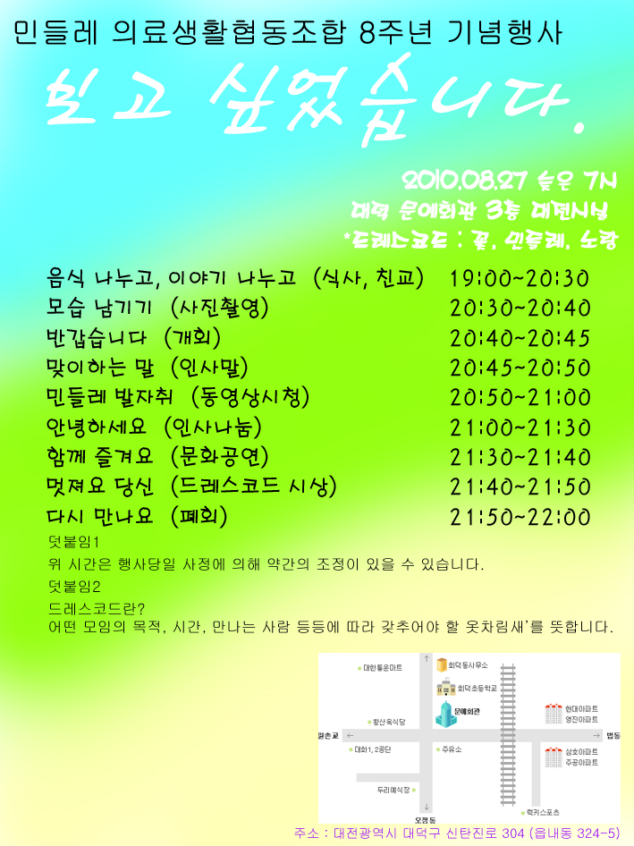 만나고 싶습니다.(민들레 의료생협 8주년 기념행사에 초대합니다)